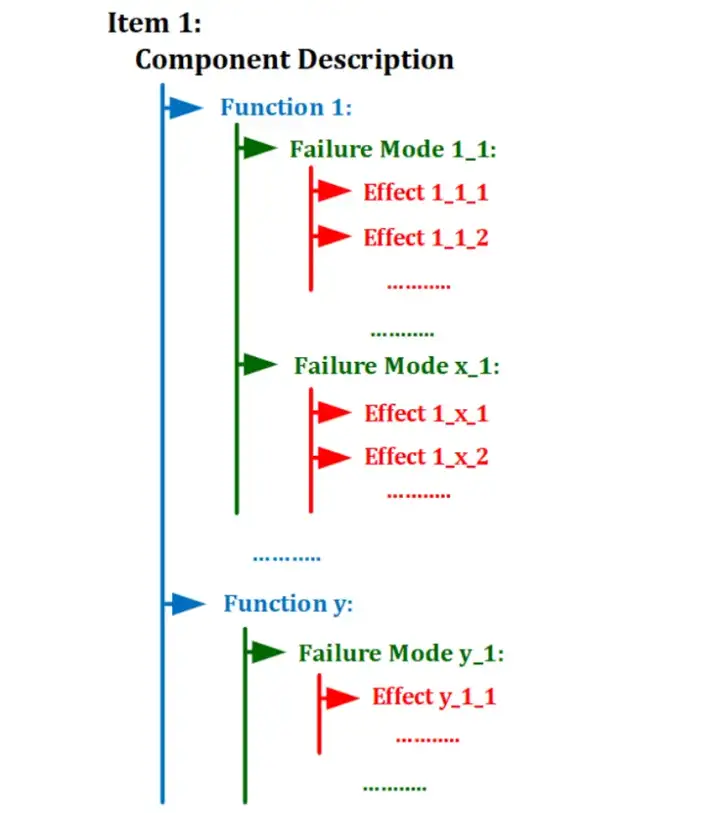 圖7. FMEA中的項目、功能、失效模式和影響的動態列表