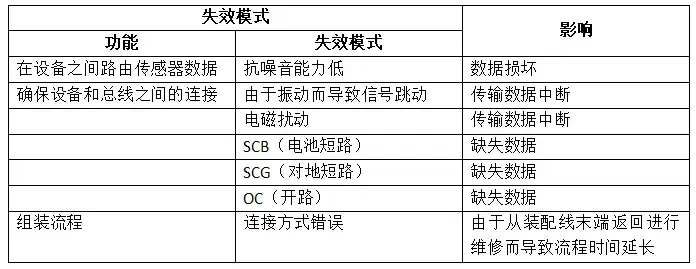 對于本研究中考慮的CAN總線線束,圖8描述了產品的功能、失效模式以及針對每個功能確定的影響。