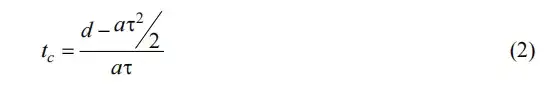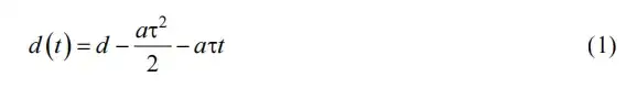 假設兩輛車的最大制動加速度相同。由于駕駛員存在反應延遲,后方車輛在前方車輛開始制動后的 τ 時間才開始制動。后方車輛開始制動后,兩車之間的距離可通過以下公式計算: