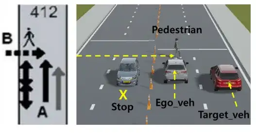 圖 4、在 Prescan 中對 IGLAD 412 號檔案進行場景建模的示意圖