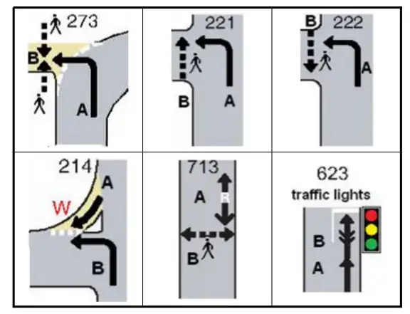韓國警察廳于 2016 年為減少城市區域的交通事故,制定了 “安全速度 5030” 政策。該政策綜合考慮交通擁堵等因素,建議城市區域的安全行駛速度范圍為 30 km/h 至 50 km/h,本研究中將該范圍的最大值 50 km/h(換算為 13.889 m/s)設定為本車的行駛速度。對于對方車輛,其速度分別設定為比本車低 10 km/h 和 15 km/h;(10)對于自行車,由于其在交叉路口人行橫道處的平均通行速度為 18 km/h(換算為 5 m/s),因此將自行車速度設定為 5 m/s;(11)對于行人,參考普通人在人行橫道上的行走速度,將其設定為 1.5 m/s。此外,考慮到車輛在曲線道路上保持與直線行駛相同速度并不符合實際情況,因此新增了一項減速條件:當車輛的航向角變化量(yaw_rate)達到 ±30 度 / 秒及以上或以下時,車輛速度降至 5 m/s。