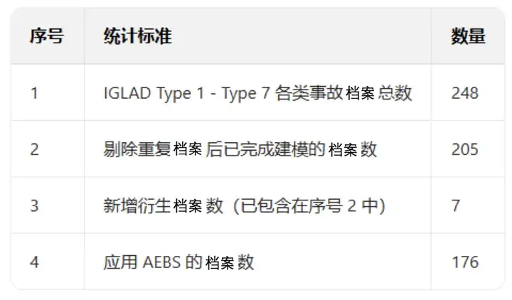 IGLAD 截至 2019 年已收集了全球范圍內約 7050 起交通事故檔案,并依據 IGLAD Codebook 將這些檔案劃分為 7 種典型類型(Type 1 - Type 7)。本研究中用于仿真的檔案詳情如下表 1 所示。