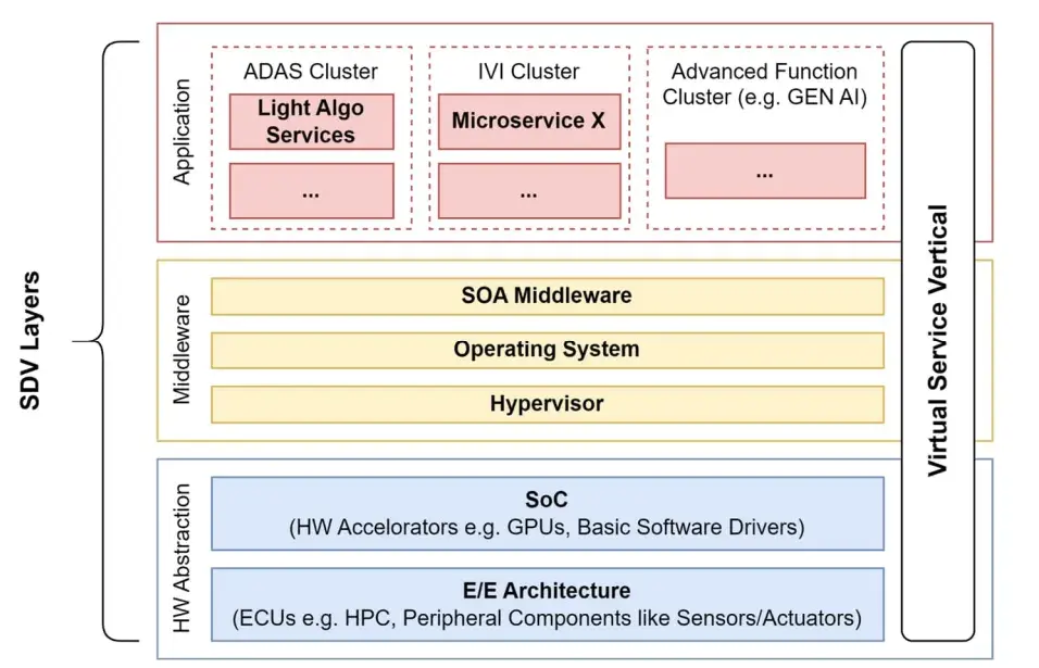 · 獨立的生命周期管理,允許車與萬物互聯(V2X)服務獨立演進或故障,而不影響核心功能。