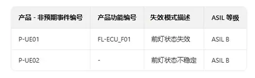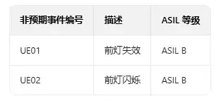 表 2、初步危害分析(PHA)中的非預(yù)期事件(UEs)及其 ASIL 等級