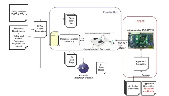 從實際應(yīng)用角度而言,法雷奧 GEEDS 開發(fā)的故障注入工具提供了實施故障注入所需的所有功能。該平臺采用兩種故障注入技術(shù):軟件實現(xiàn)故障注入(SWIFI)和基于 Nexus 的故障注入。軟件實現(xiàn)故障注入(SWIFI)基于修改應(yīng)用程序的源代碼;基于 Nexus 的故障注入利用部分微控制器的片上調(diào)試功能訪問內(nèi)存并損壞數(shù)據(jù)。