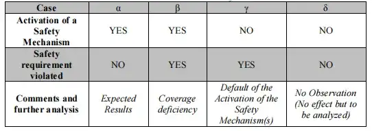 驗證已識別的失效模式(例如 FMECA 表格中的某一行)是否能被已實施的安全機制正確處理。因此,通過注入導(dǎo)致所考慮失效模式的代表性故障原因,可以激活已識別的安全需求,從而便于測試。