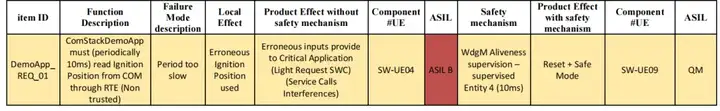 為定義這些讀取數(shù)據(jù),建議利用安全分析結(jié)果,特別是 FMECA 表格中的以下列:失效模式、影響(局部影響和對較高架構(gòu)層級的影響)以及描述安全機制的列。
