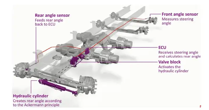 圖13、采埃孚Servocom后橋轉向-電子控制轉向系統