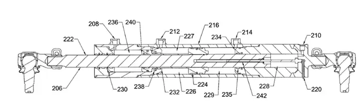在圖 11 中,兩個對中壓力端口(208 和 210)位于油缸(102)的兩端,而圖 4 中的對中端口則位于油缸的右側。這兩種系統均利用蓄能器提供對中壓力。