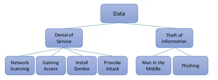 基于樹的方法能夠表示和描述組件之間的關聯及其組織關系。攻擊樹模型是這類方法中最具代表性的一種,它可以解釋系統面臨的威脅并展示攻擊路徑。攻擊樹分析是一種利用樹狀結構進行漏洞評估的技術,圖 3 展示了攻擊樹的基本結構。